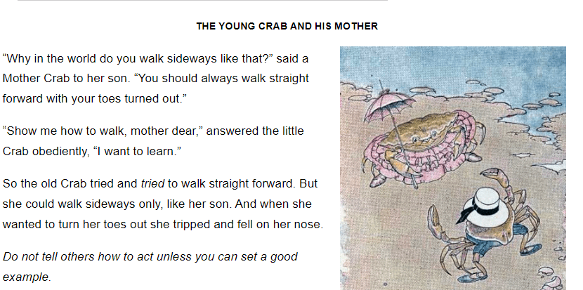 մայր խեցգետին իր որդուն. «Միշտ պետք է ուղիղ առաջ