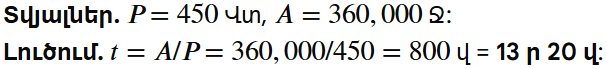 5. 450 Վտ հզորություն ունեցող հեռուստացույցը, ըստ հաշվիչի ցուցմունքի, ծախսել է 360 կՋ էներգիա: Որքա՞ն ժամանակ է միացված եղել հեռուստացույցը: