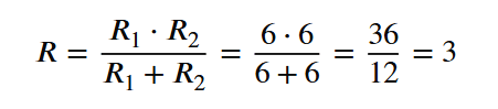 Խնդիր 1․ Որոշեք նկարում պատկերված շղթայի տեղամասի դիմադրությունը, եթե միմյանց միացված ռեզիստորների դիմադրությունները համապատասխանաբար հավասար են՝ R1= 6 Օմ, իսկ R2= 6 Օմ: